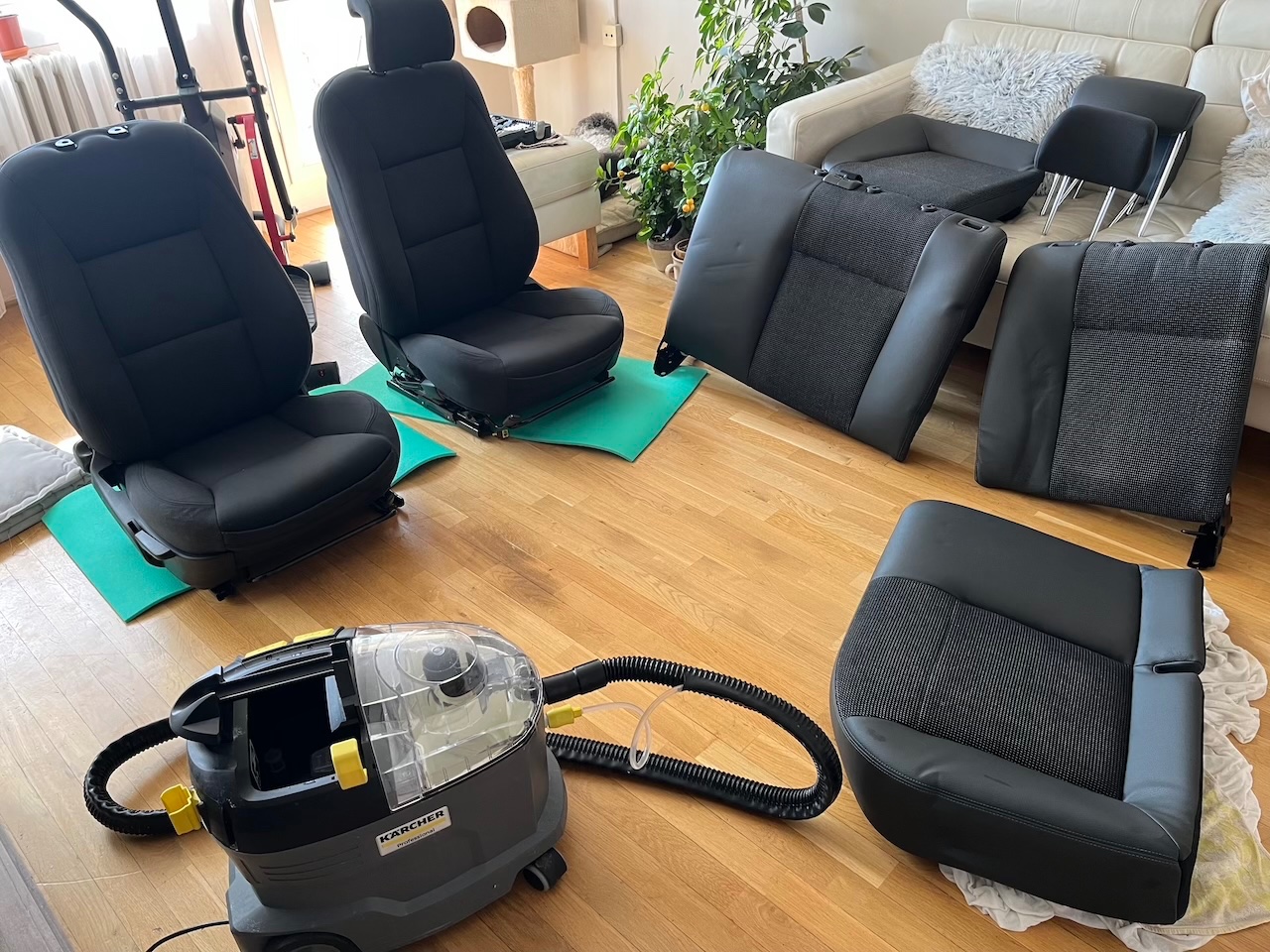 Na víkend jsem jsem si půjčil tepovací mašinku Kärcher, v IKEA koupil sadu na čištění a impregnaci kůže a dal se do toho...