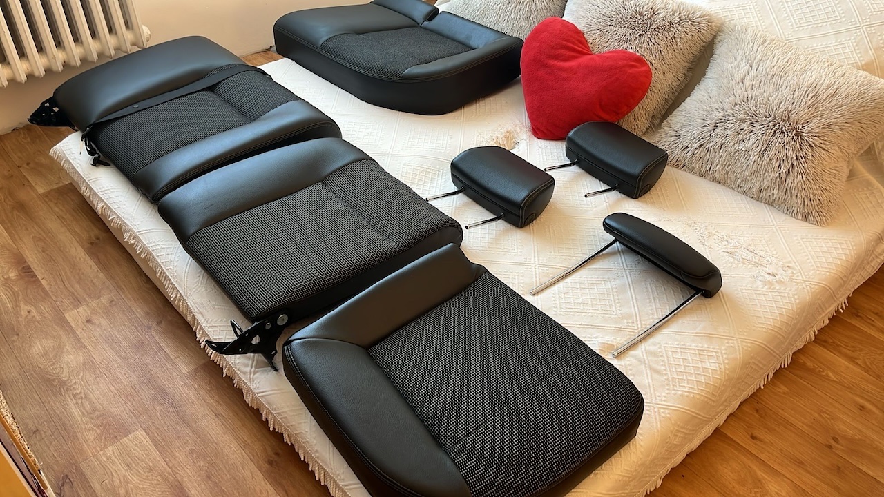 Pokračujeme v akci "zvýšení komfortu" a na řadě jsou sedačky. Už je to cca 2 roky co jsem si z vrakoviště u Plzně přivezl kompletní interiér v polokůži, tj. sedačky a tapce dveří. Času na instalaci se pořád nějak nedostávalo a tak mám teď radost oznámit, že jsem se do toho konečně pustil...