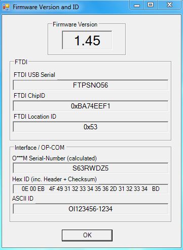 Udělal jsem chybu nevědomě a nainstaloval jsem si origo OP-COM a použil klon kabel. Od té doby nejde kabel. OPComFUT29b mi při pokusu o sdělení FW ukáže následující: