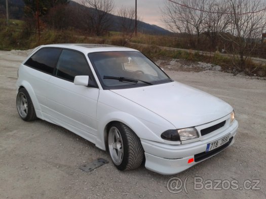 Každopádně tato konkrétní Astra byla ťuknutá na předek (jak moc nevím), nemá předu původní nárazník Rieger, který tam patří. Ještě nedávno měla jinou barvu - měňavka v hnědých odstínech.