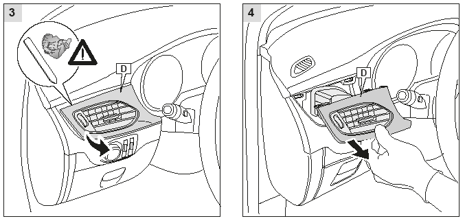 1. klinom vypacis leskly plast spolu s vetracou mriezkou vlavo od volantu,