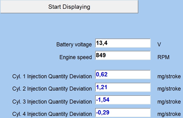 Ahoj, co říkáte na tyto hodnoty vstřikovačů? Je to na volnoběh. Při ranní startu je celkem znát nevyrovnaný běh motoru. Docela se to i "kucká". Děkuji