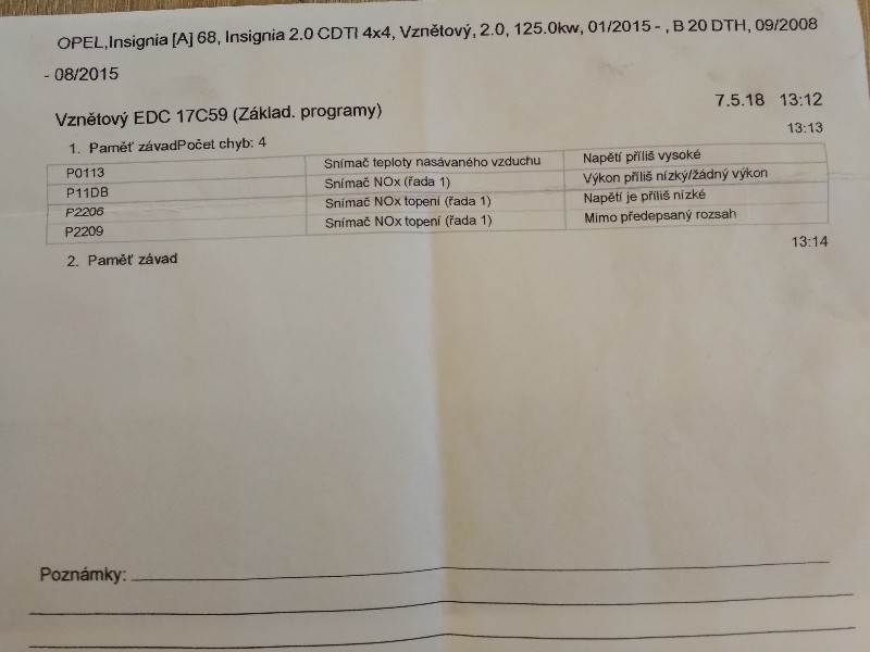5/ kody máš z diagnostiky z Opla? Čo ti povedali? Určite ti nedali len čísla kodov
