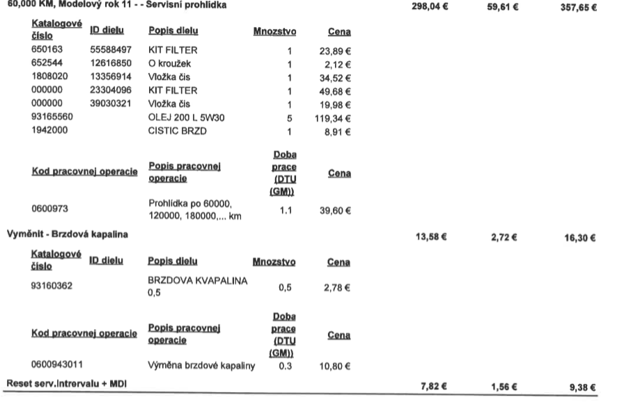 Ta cena je strasna! Ale je to OPEL servis takze normalna :)