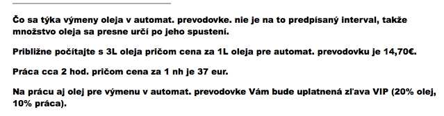 Výmena oleja v AT -> cca 120 € € s DPH