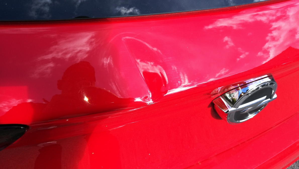 Nejdříve nám víko kufru navštívil při velkém větru kontejner na odpadky. Když už to nikdo chvilku neobíjí tak tohle. Zbytku se vyhnul.