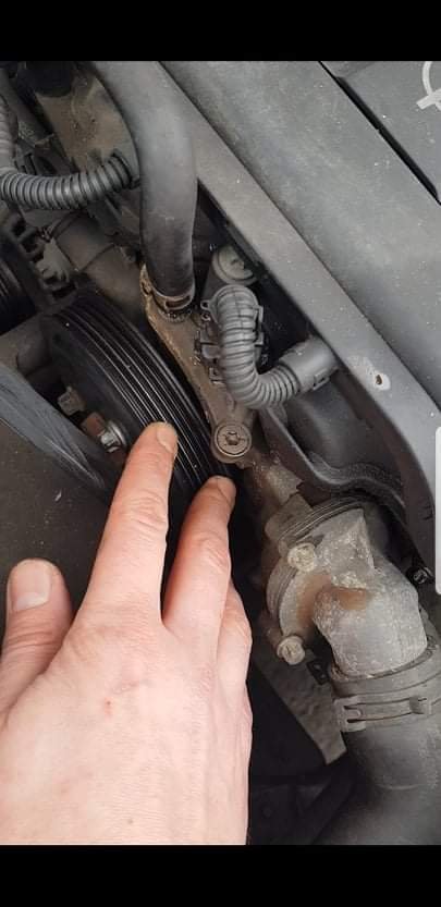 2. To nahore neni kladka, ale remenice vodni pumpy. Zrejme se rozpadla klicka loziska a hridelka se ma snahu nekdy kousnou. Nelze 'jen utahnout/opravit', ale 'jen vymenit' za novou. Cena 1500-5000Kc podle vyrobce/kvality. Kod dilu 1334166