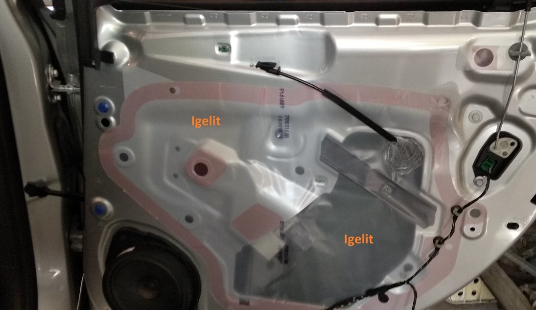Bitumén do dverí sa nechystám použiť, je ťažký, používam len ľahkú butylkaučukovú špongiu s tým vedomím, že vibrácie a nízkofrekvenčný hluk nebude odstránený.