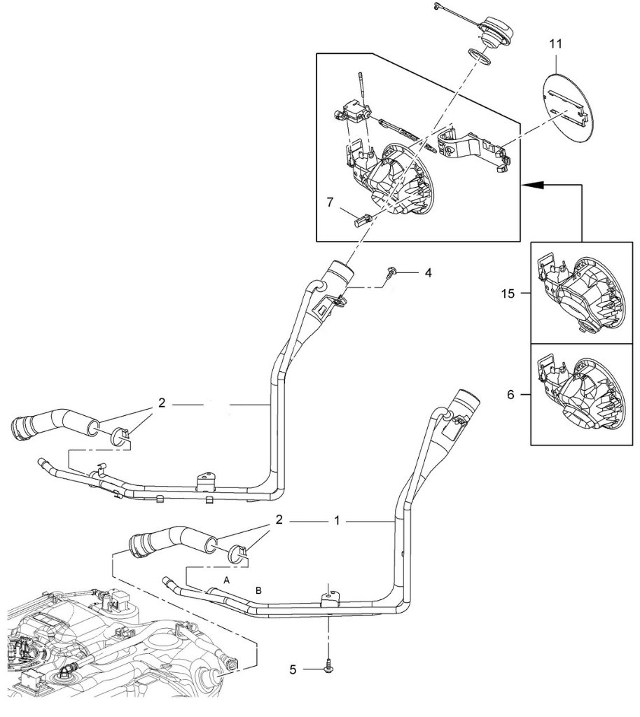 Trubka od hrdla do nádrže nevevede přímo, je tam koleno a vodorovný úsek, možná i trochu sifon. Takže by aditivum mohlo zůstalo v trubce. Obrázek ze Zafiry, ale bude to podobný.milosh píše: 11 úno 2021, 21:15 Je velký problém to nalít až po tankování třeba doma v klidu v garáži? Stejně se to smíchá ne?![]()
