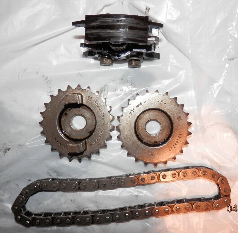 Jelikož motor měl na volnoběhu takový "zvonivě klapavý zvuk" rozhodnul jsem se vyměnit i řetěz pohánějící vačky. Nedejte na informace, že se nemění. Je to kritický bod tohoto motoru. Bohužel je nutné odmontovat vstřiky, sundat hlavu motoru atd...