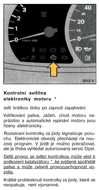 Při cestě z dovolené se mi rozsvítila a sem tam blikala oranzova kontrolka řídící jednotka motoru..vždy do kopce!! Na rovince se po chvíli zhasla..jel jsem kopcovitý terén furt nad 2500 otáček kopce jak cip, vedro,...vše ostatní bez problémů..po ochladnutí se zatím nerozsvitila..kdo poradí..? Omega b 3.0 benzin