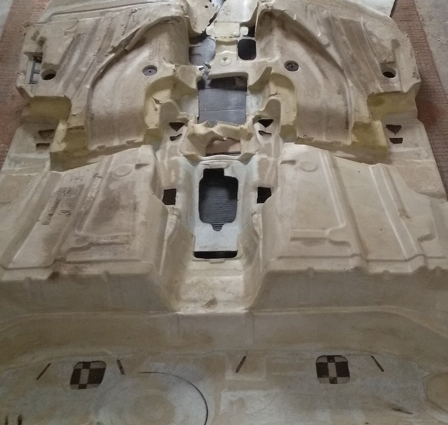 Takmer na celej ploche sú nalepené asfaltové pláty a penový koberec je až do najmenších detailov vyprofilovaný presne podľa podlahy.