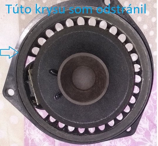 Odstránil som krysu na plastovom koši pôvodných reproduktorov a penový záves nalepil. Takto som nechtiac zväčšil plochu membrány o cca 10% :D Počítal som to ;)