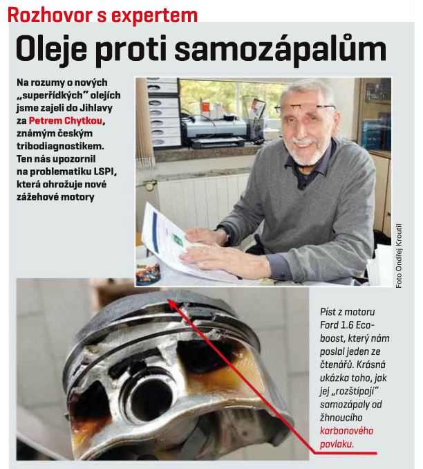 Jako priklad je tam pist z Fordiho 1.6EB.Zatimco klepani potlacite snizenim predstihu, LSPI nelze z pohledu ridici jednotky zadnym zpusobem regulovat... A prislo se na to, ze sklony k LSPI vyrazne ovlivnuje i motorovy olej. Zasadne jej zvysuje vapnik obsazeny v detergentnich prisadach.
