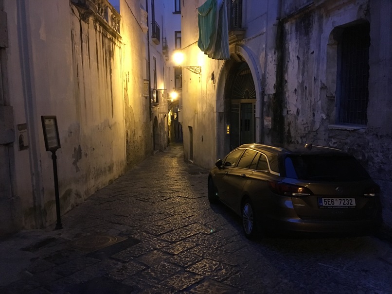 v takových uličkách jsme parkovali na ubytování - bez sklopených zrcátek to nešlo, ale ten výhled ráno pak stál za to.