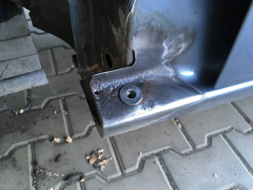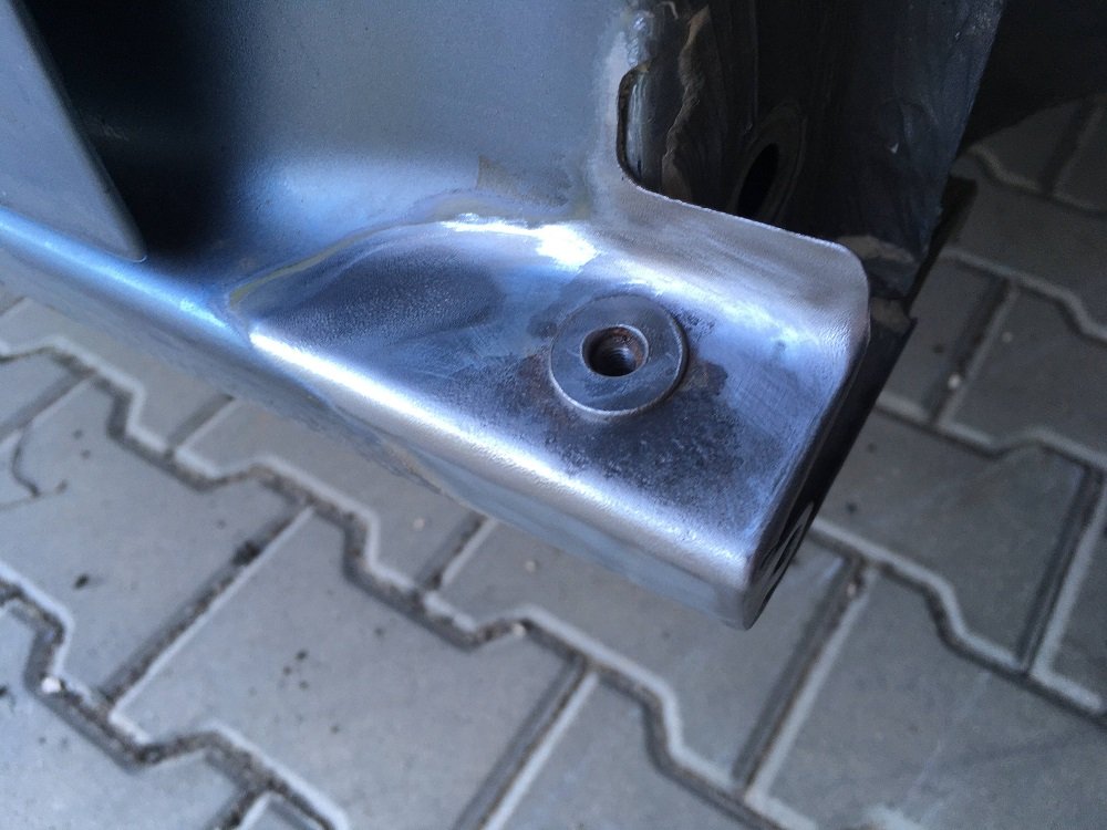 Co slo vybrousit ocelovym kotoucem jsem vybrousil, v zahybech a vnitrni casti prahu jsem vyskrabal stary tmel a pouzil smirkovy papir. Nemel jsem bohuzel k dispozici svarecku a zaroven jsem nechtel opravu prodluzovat (nebyla to moje garaz), tak jsem tu diru v prahu u ridice neresil. Navarena matka drzela festovne a plechu tam bylo jeste dost. Soustredil jsem se hlavne na dukladne odstraneni rzi. Foto vybrousenych blatniku jsem nekde potratil.