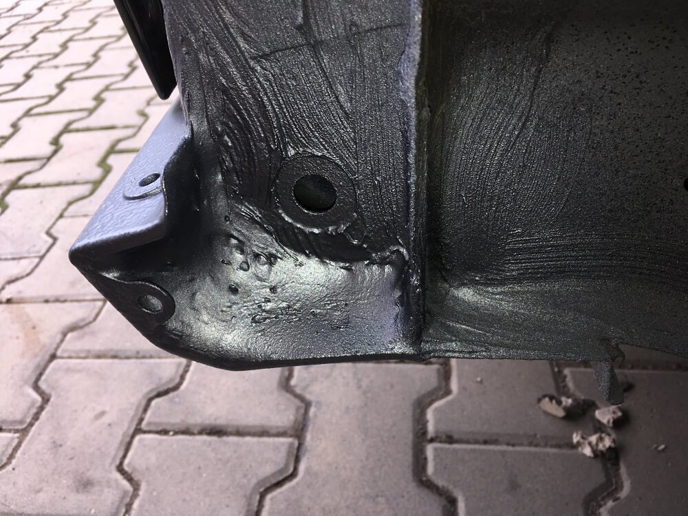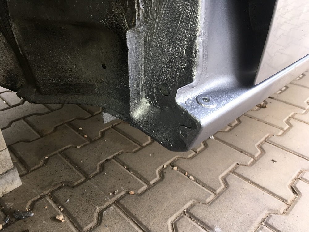 Osetreni jsem vzal relativne poctive - 3-4x vrstva epoxy Brunox na zastaveni koroze, karosarsky tmel na spary prahu, 3x vrstva plnice a spousta brouseni, 3x finalni barva rozstrikem + 3x lak rozstrikem (do 15min po barve). Spodky/vnitrky blatniku a prahy jsem vzal jeste Body nastrikem.