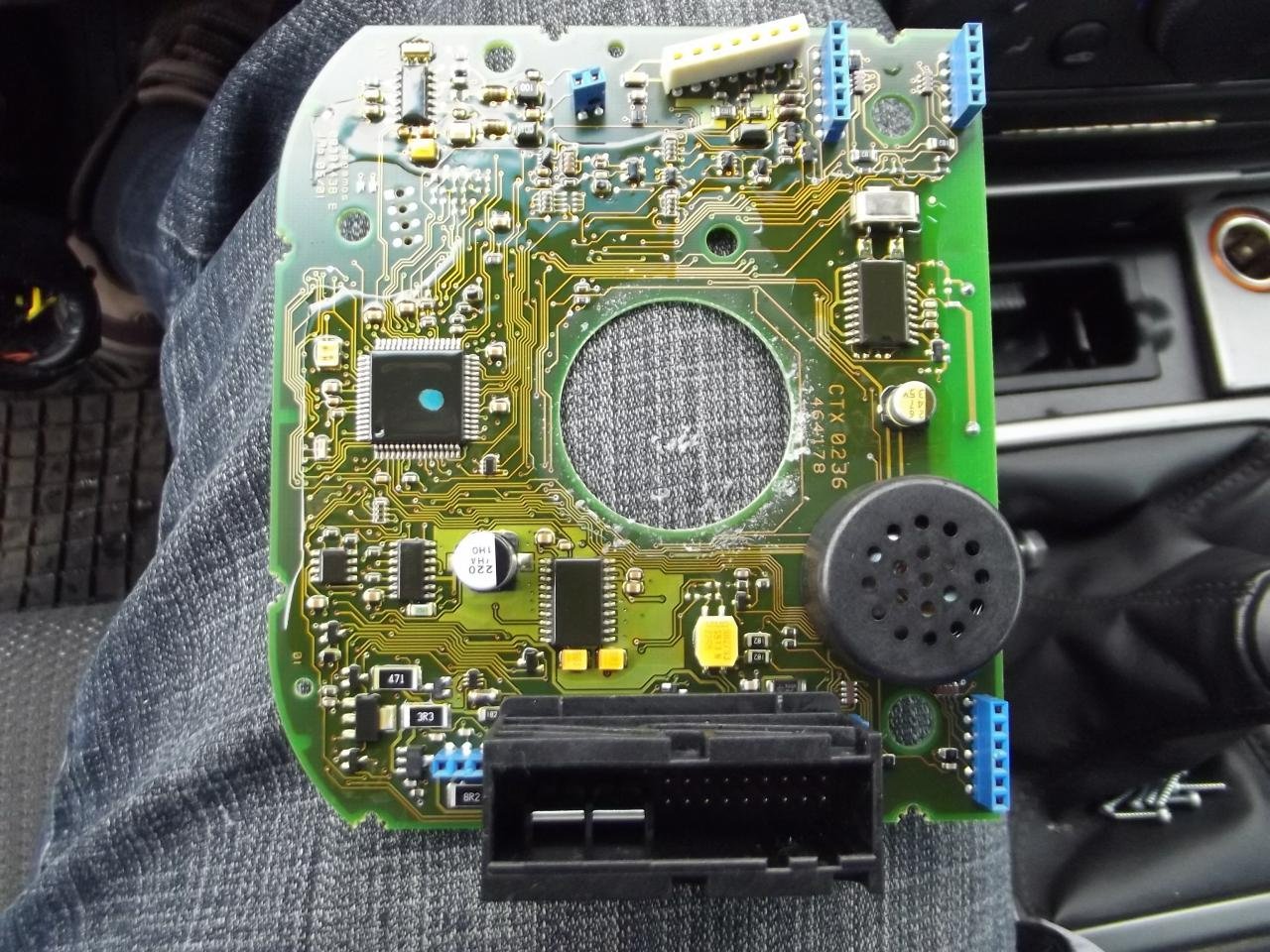 Při té příležitosti, když už jsem měl dole volant, tak jsem oddělal i desku s budíkama, rozebral ji a zaslepil diodu, která svítí jako chybová kontrolka tlaku v pneu.