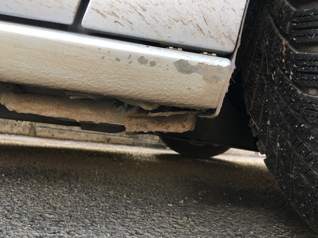 z těch fotek je zřejmý že je to osekaný od kamínků (je vidět jak je z plastizolu osekaný lak, taky přední hrana dveří je zjevně osekaná), jezdíš někde po štěrkový cestě nebo někde kde se v zimě sype drtí?